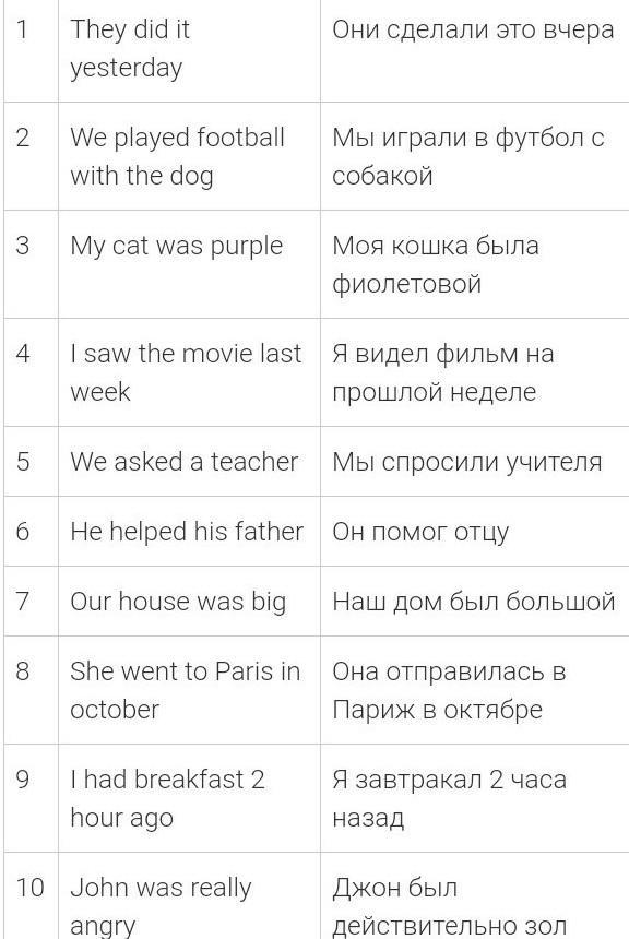 10 отрицательных предложений в Past Simple