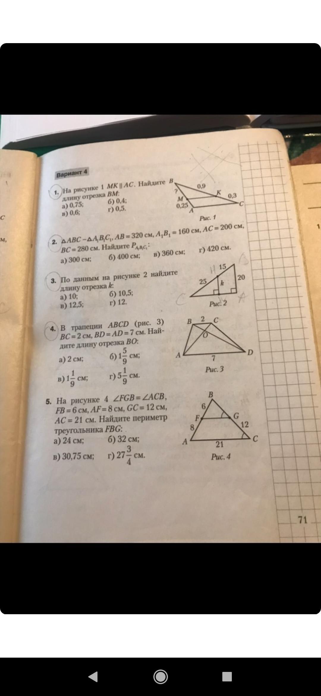 Имеем отношение ВС/АD=BO/OD или 2/7 = х/(7-х)