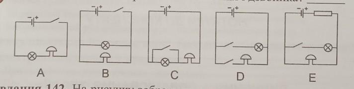 На якому з рисунків зображена електрична схема для незалежного використання електричного освітлення і дзвоника?