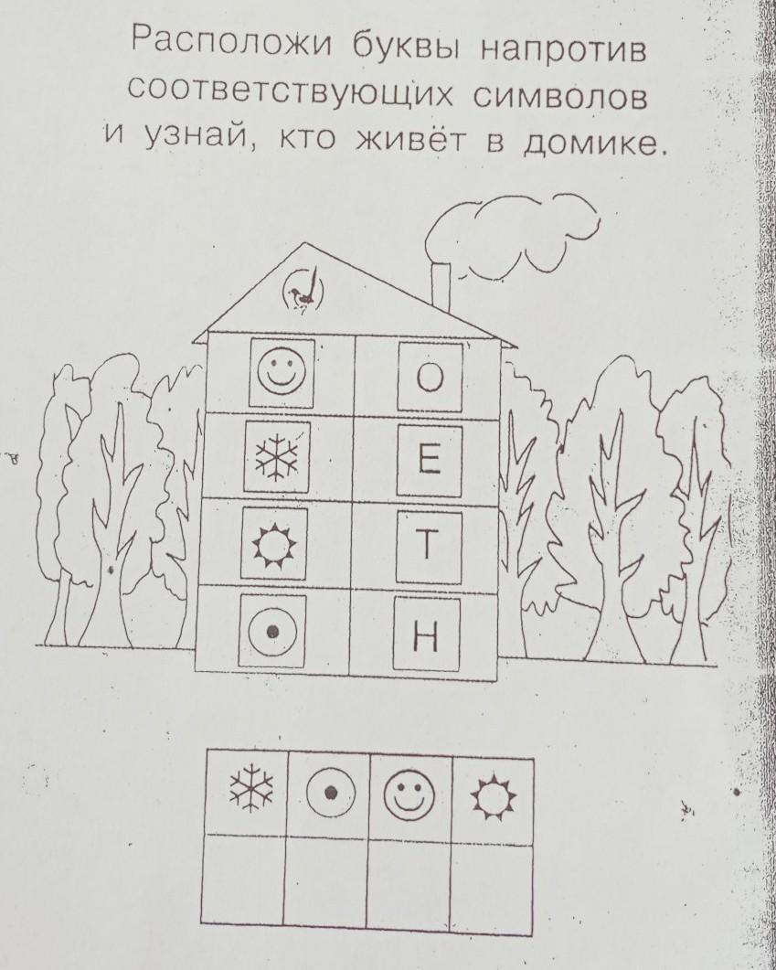 ищем символ в домике напротив которого есть буква и эту букву подставляем в ответ под этот символ