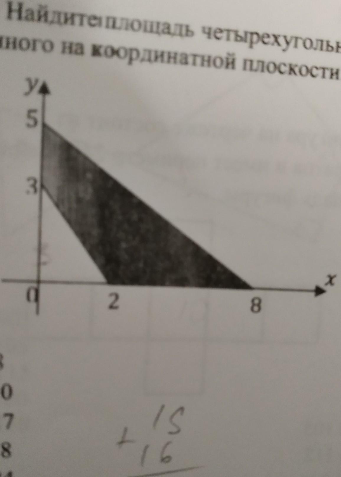 Найдём площадь четырёхугольника как разность площадей двух прямоугольных треугольников:
