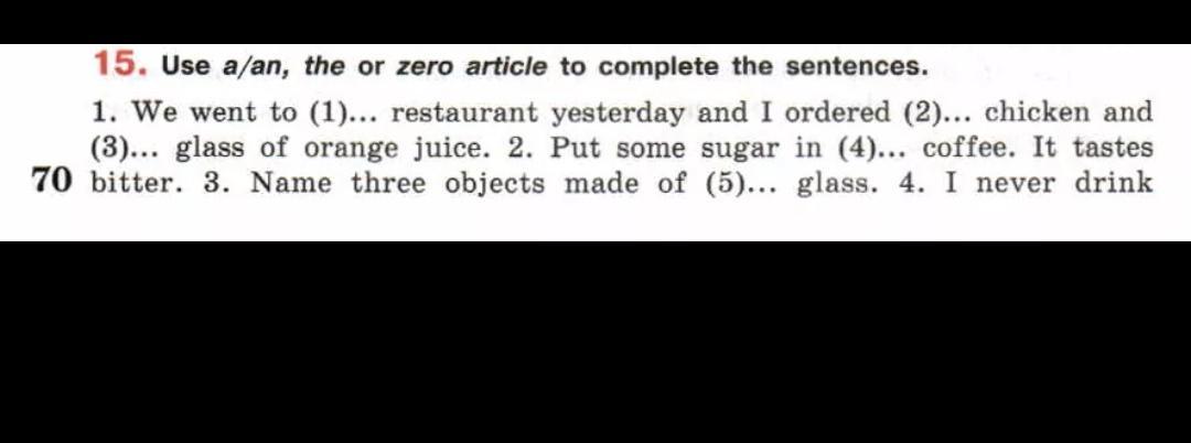 1- a, 2 - a, 3 - the, 4 - nothing, 5 - a