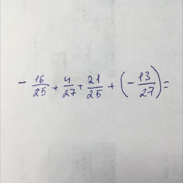-16/25 + 4/27 +21/25 + (-13/27) = -2/15