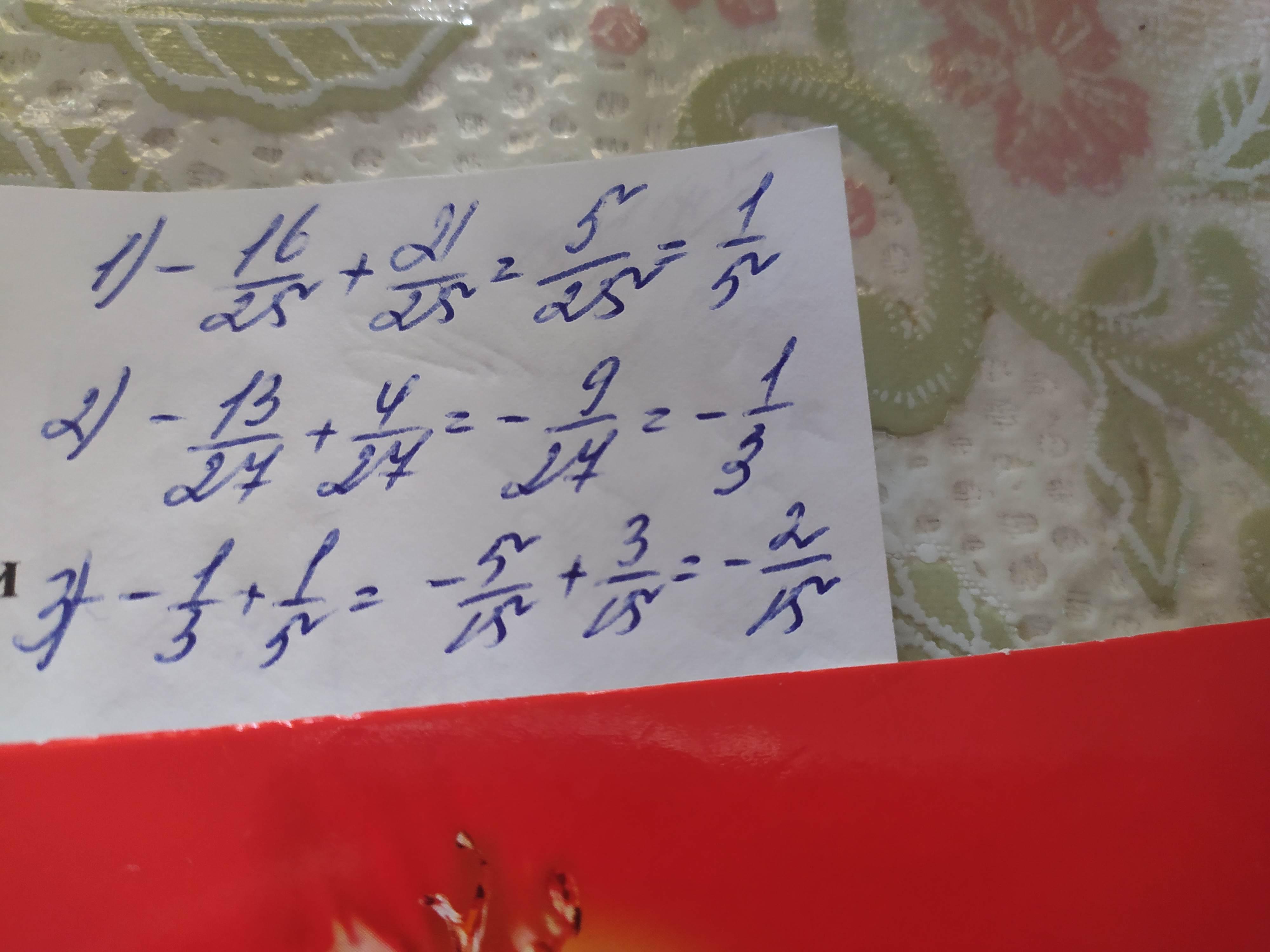 1. -16/25 + 21/25 = 5/25 = 1/5