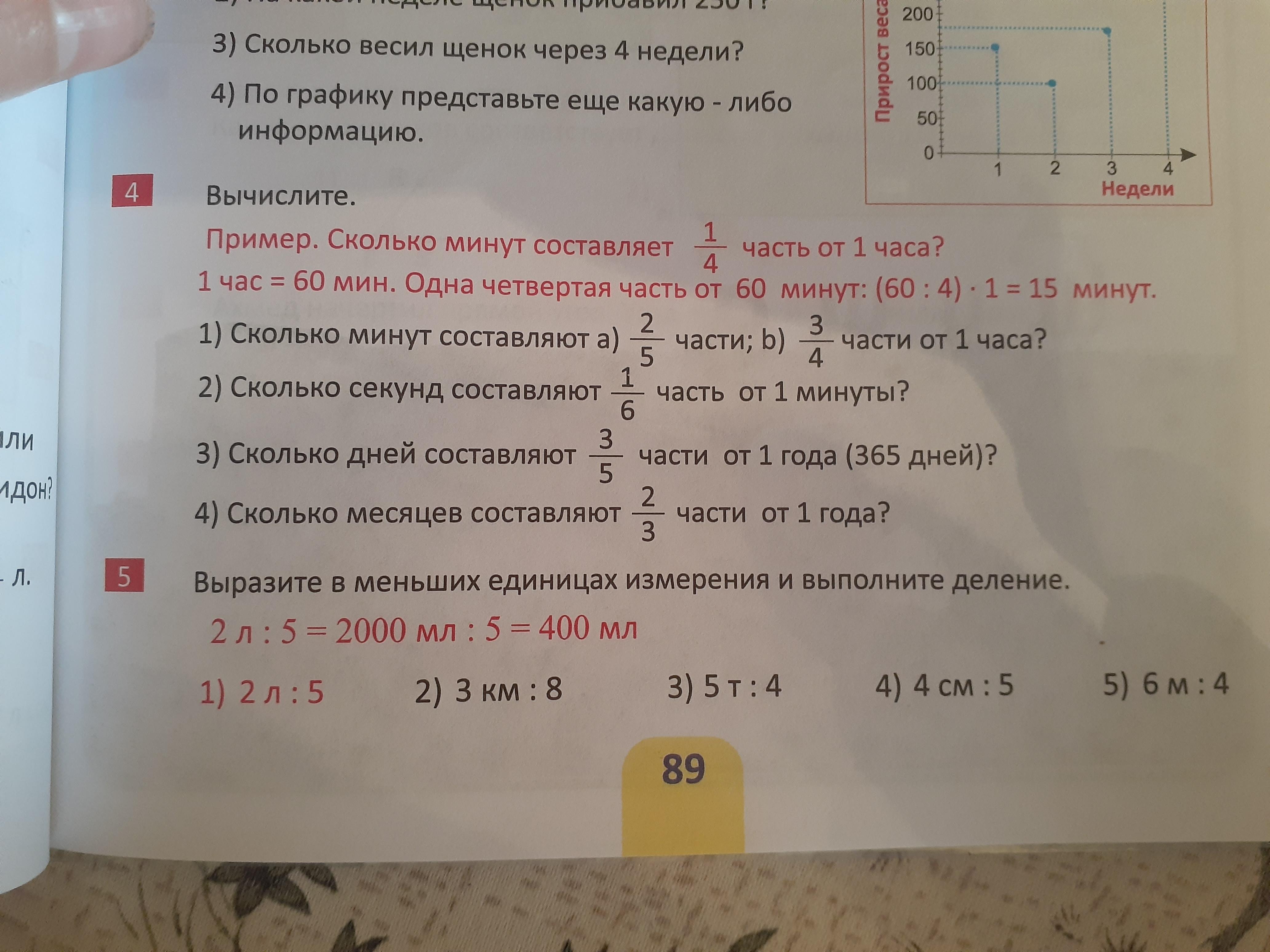 3) 5 т: 4 = 5000 кг:4= 1250 кг