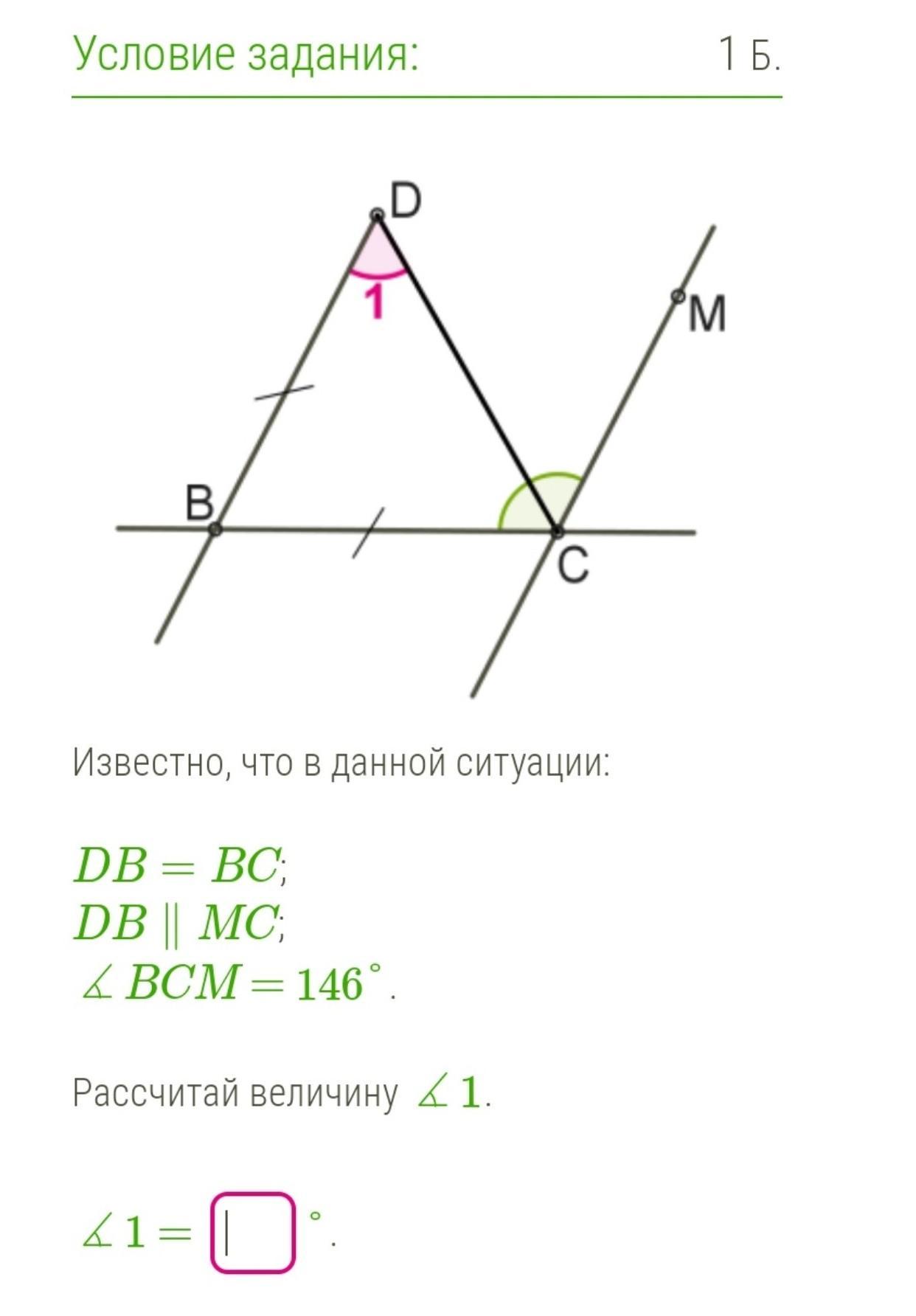 Так же дано что ДВ=ВС, т.е треугольник ВДС равнобедренный и угол 1 равен углу ВСД, значит он равен 73 градуса
