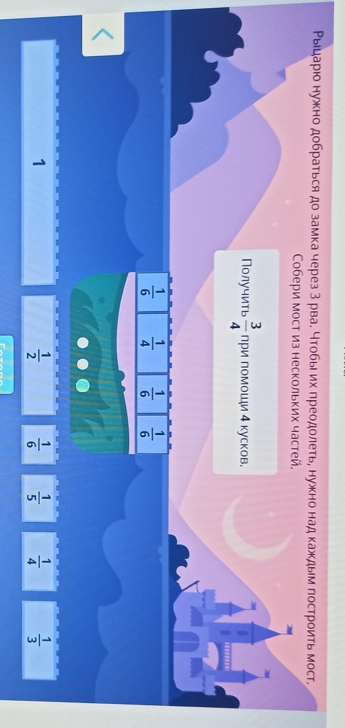Рыцари нужно добраться до замка через 3 рва.Чтобы их преодолеть нужно над каждым построить мост. Собери мост из нескольких частей.