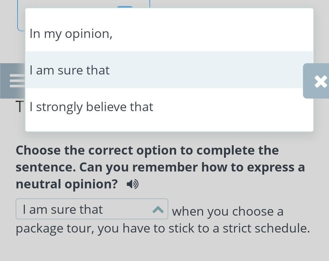 Choose the correct option to complete the sentence. Can you remember how to express a neutral opinion?