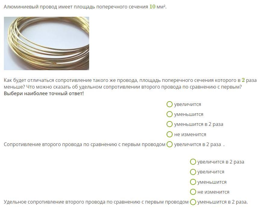 R'/R = (2*R)/R = 2 - получается, что уменьшение площади поперечного сечения проводника в 2 раза ведёт к увеличению его сопротивления в 2 раза.