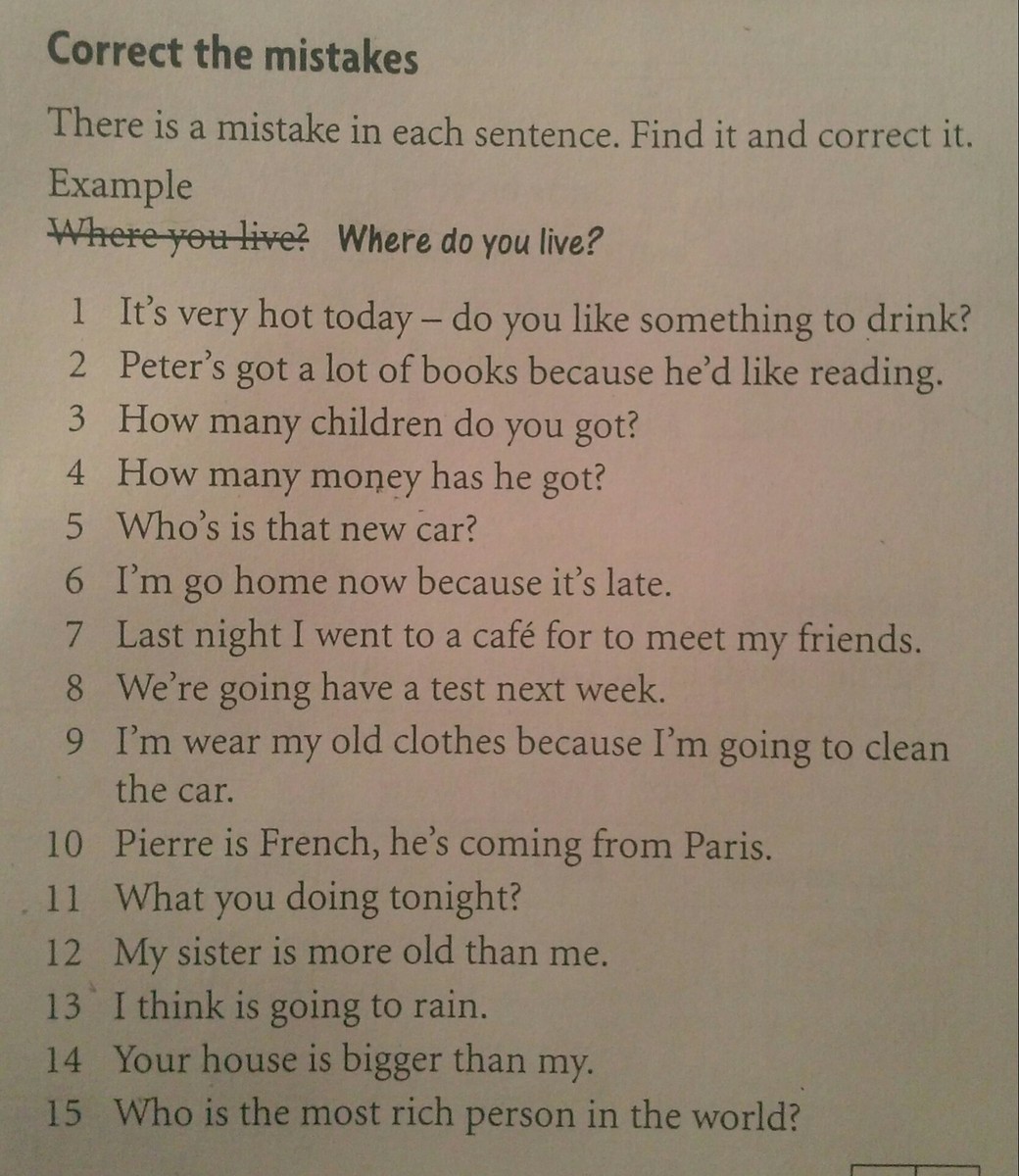 1 – would you 2 he likes 3 have you 4 How much 5 Whose is 6 I’ll go 7 café to meet 8 going to have 9 I’m wearing 10 he comes 11 What are you 12 is older 13 think it is 14 than mine 15 the richest