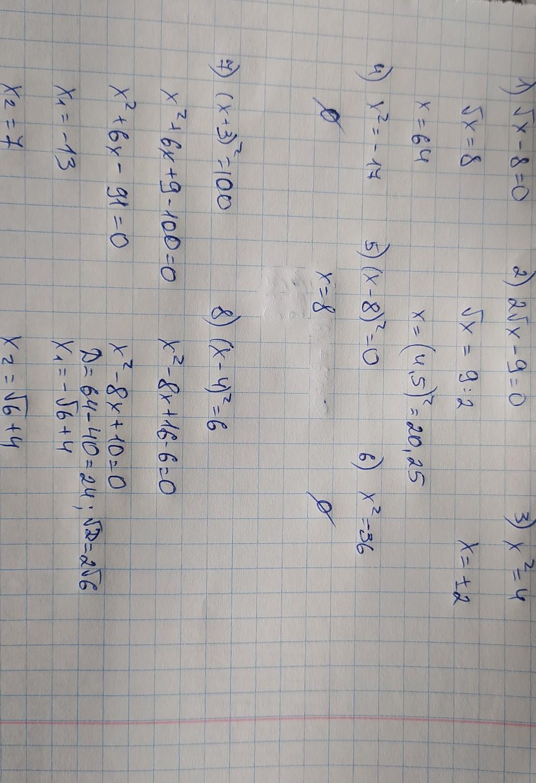 1. √x-8=0
