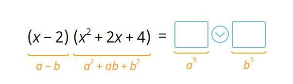 Ответ:(х-2) *(х^2 + 2х+4) =х^3 + 2х^2 +4х-2х^2-4х-8= х^3-2^3