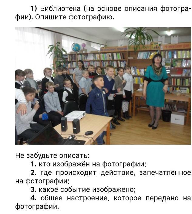 На фотографии мы видим школьную библиотеку. За размерами, могу сказать, что она относительно небольшая. А ее полки переполнены книгами с яркими обложками. В помещение есть растения и глобус. Также можем заметить присутствие учеников и учителя. Судя по их взгляду и компьютеру слева на столе, они смотрят какой то материал с помощью проектора. По их заинтересованности и улыбкам на лице, можем сказать, что им нравится быть здесь и им интересно