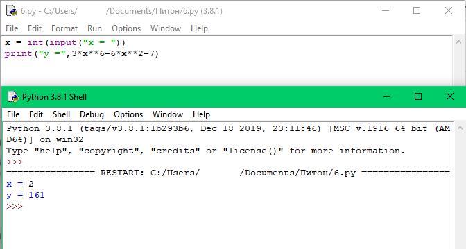 Если нужно вводить дробные значения x, то меняем первую строку на x = float(input("x = "))