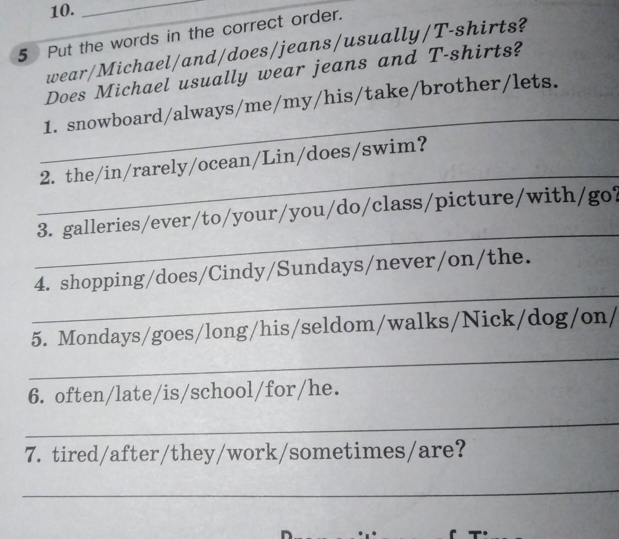 5. Nick seldom goes.. (там дальше слов не видно, но должно начинаться так)