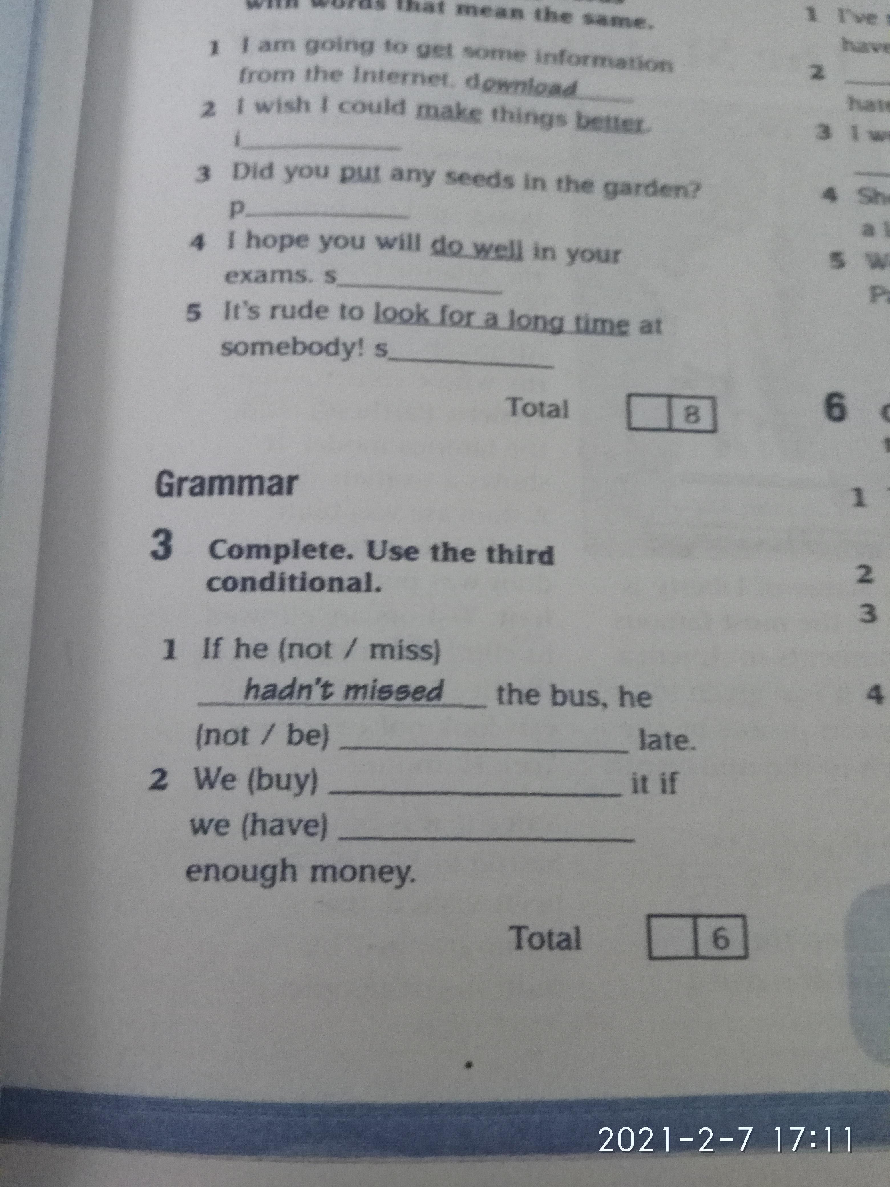 1 If he hadn't missed the bus, he wouldn't have been late.