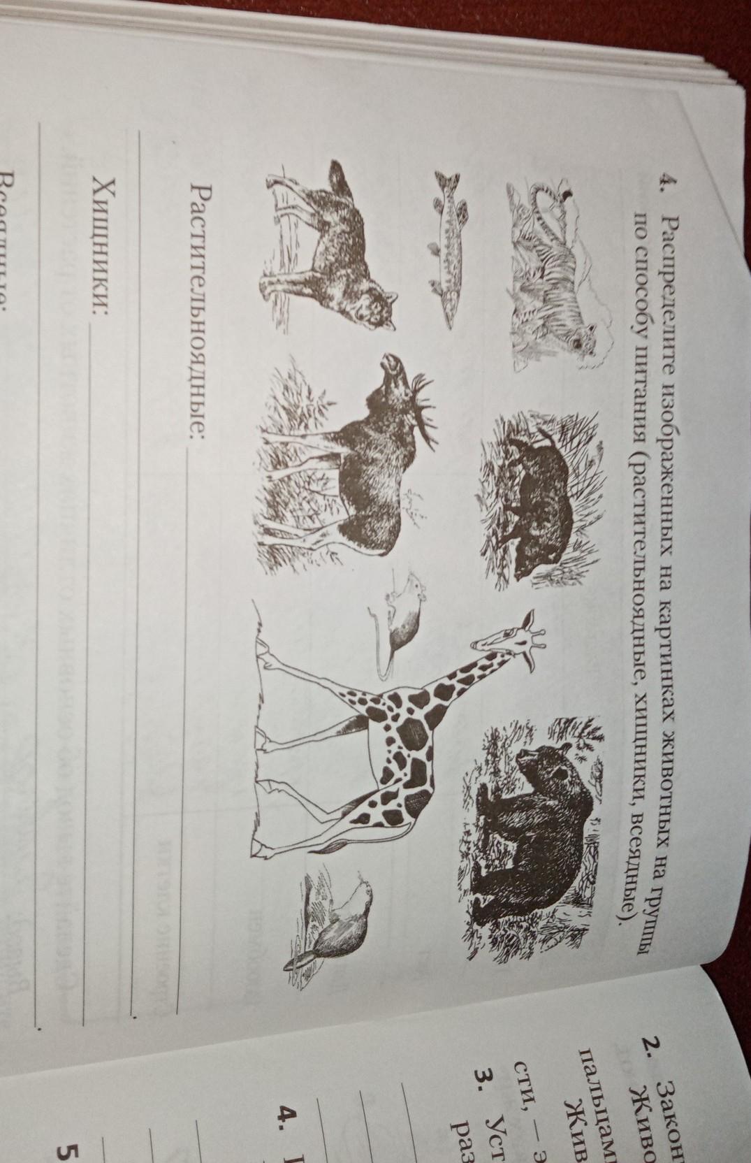 Распределите изображённых на картинках животные на группы по способу питания растительноядные хищники всеядные
