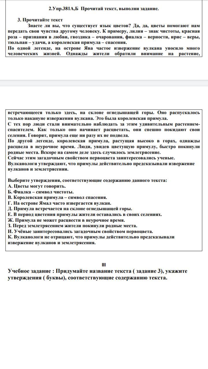 Учебное задание : Придумайте название текста ( задание 3), укажите