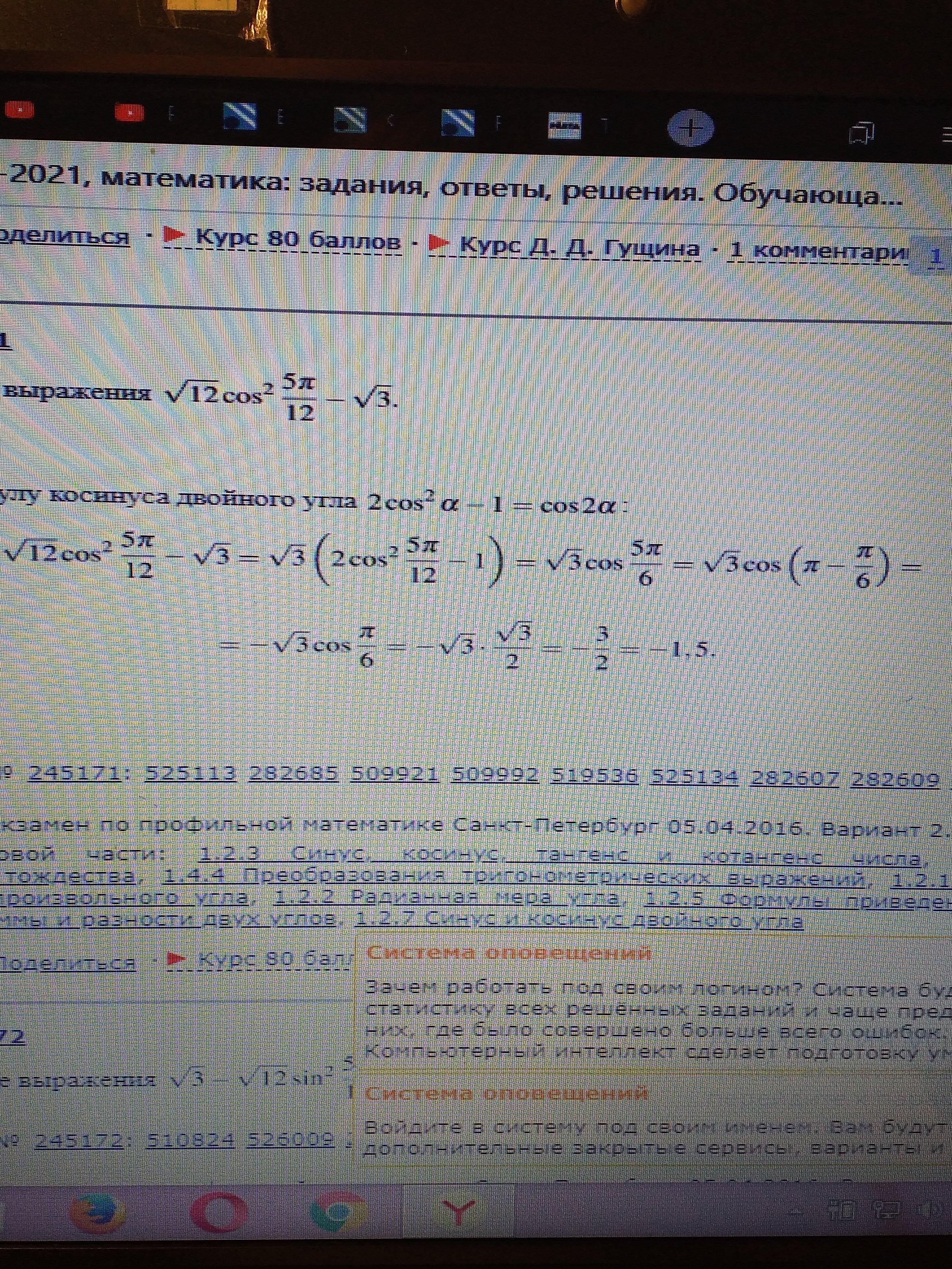 Тот в котором в скобках (2cos^2 5pi/12 - 1) = 5pi/6