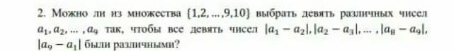 Поетому только 8 различних |а_і - а_j| могут бить в нашем наборе, а 9 будет повторятся.
