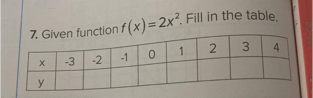 x-3=y18; x-2=y8; x-1=y2; x0=y0; x1=y2; x2=y8; x3=y18; x4=y32