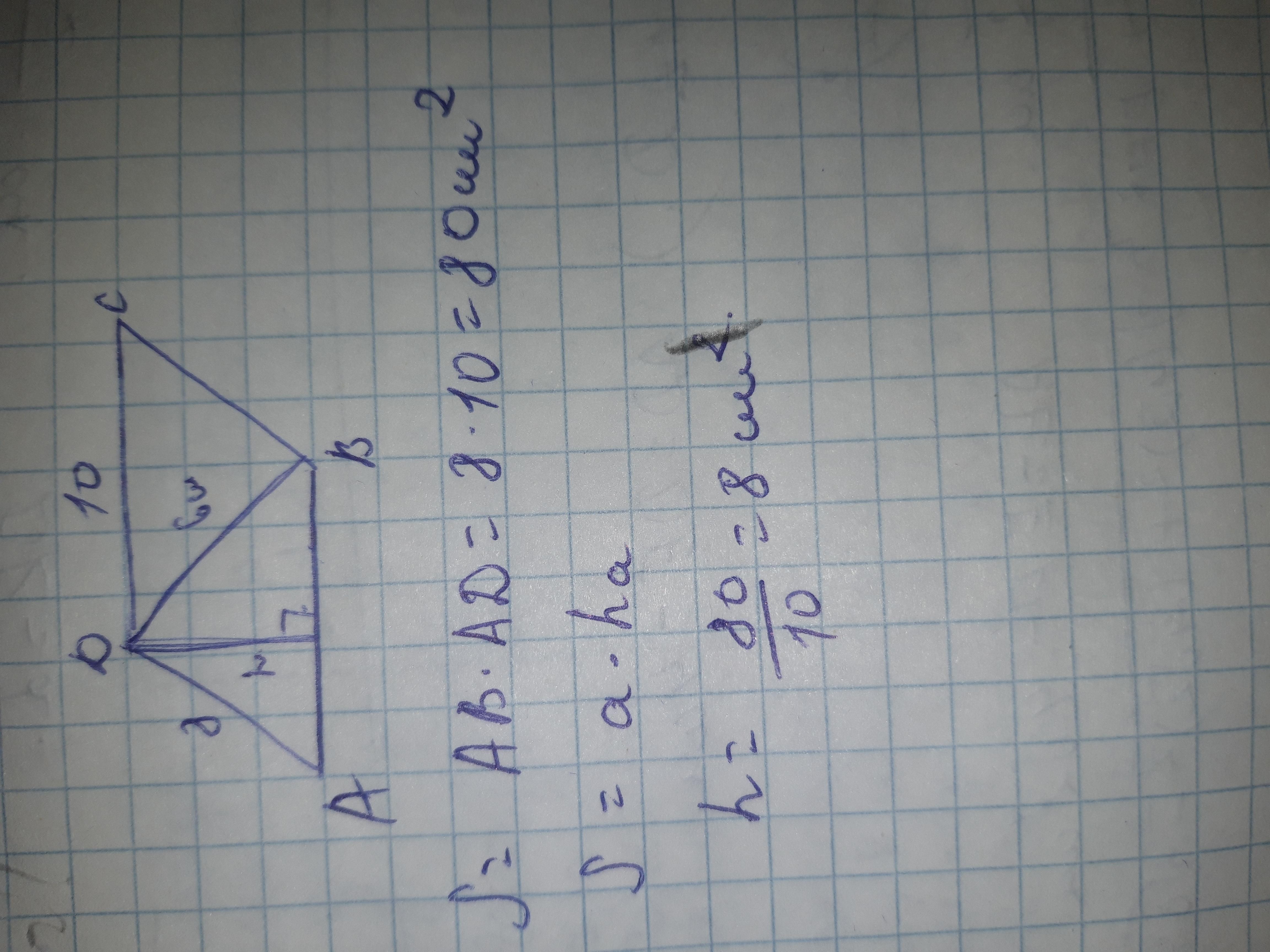 Найдите площадь и высоты параллелограмма, стороны которого равны 8 см. и 10см., а одна из диагоналей равна 6см.