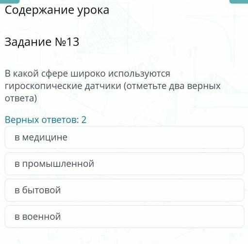 В какой сфере широко используются гироскопические датчики (отметьте два верных ответа)