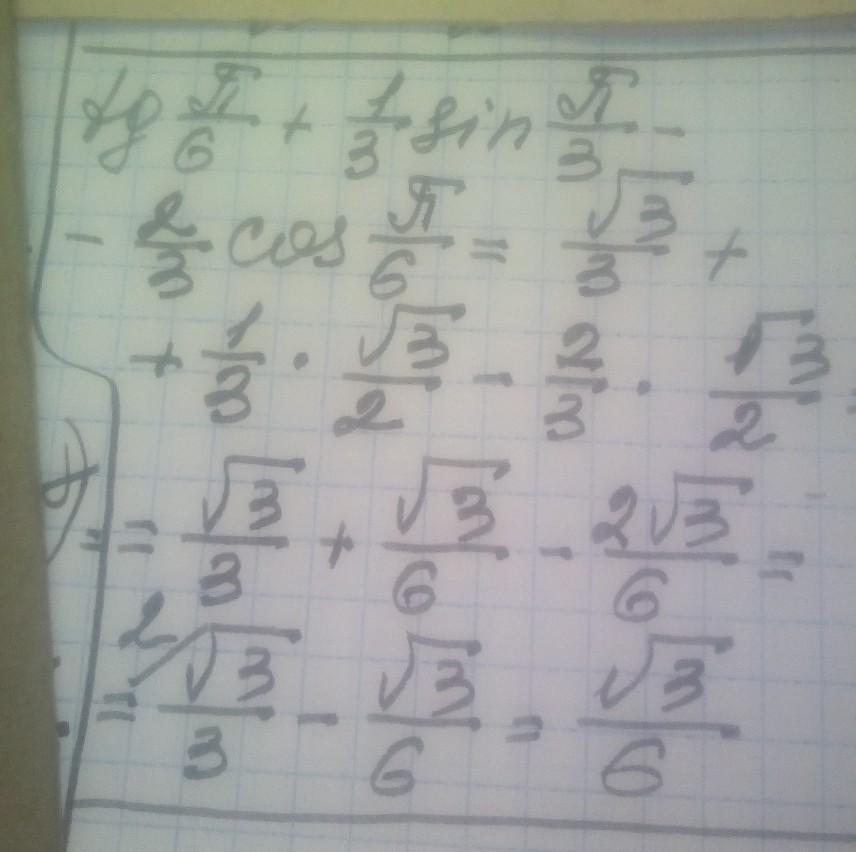 2) tg p/6 +1/3 sin p/3 - 2/3 cos p/6