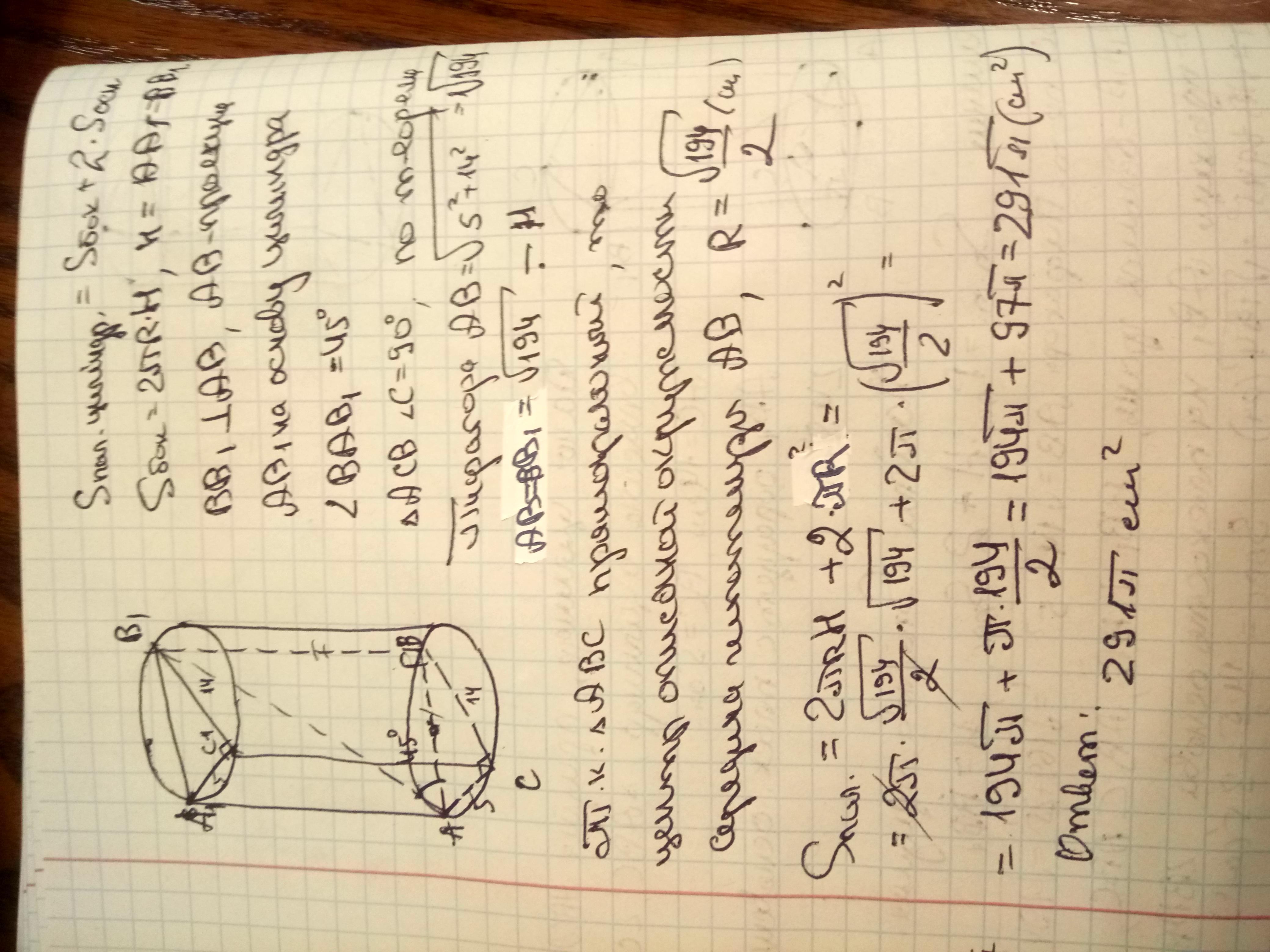 Определи площадь полной поверхности цилиндра.