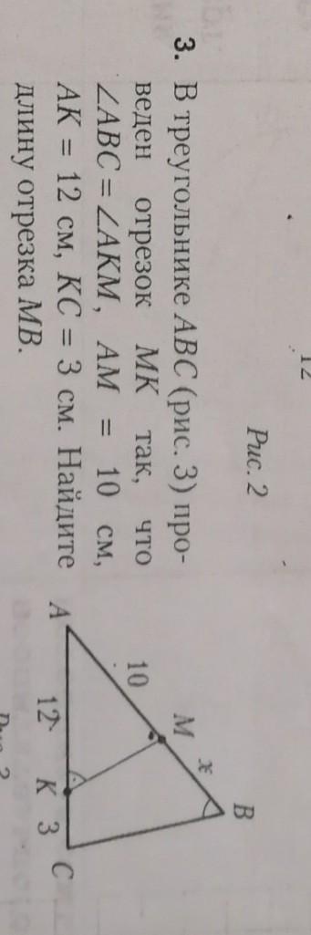 2) Т.к. АМ=10, АК=12, КС=3, то АС=АК+КС=15, АВ=АМ+МВ=10+МВ значит,