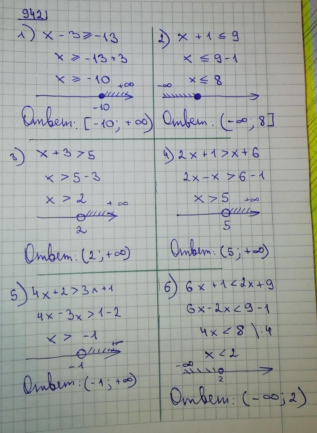 Решение неравенство и изобразите множество его решение на координатной прямой 942