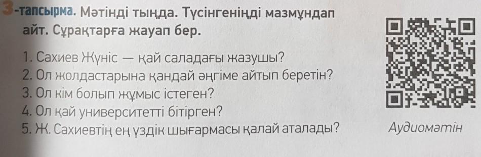Мәтінді тыңда. Түсінгеніңді мазмұндап айт. Сұрақтарға жауап бер.
