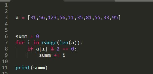 дан массив из 10 целых элементов Вывести сумму индексов чётных элементов