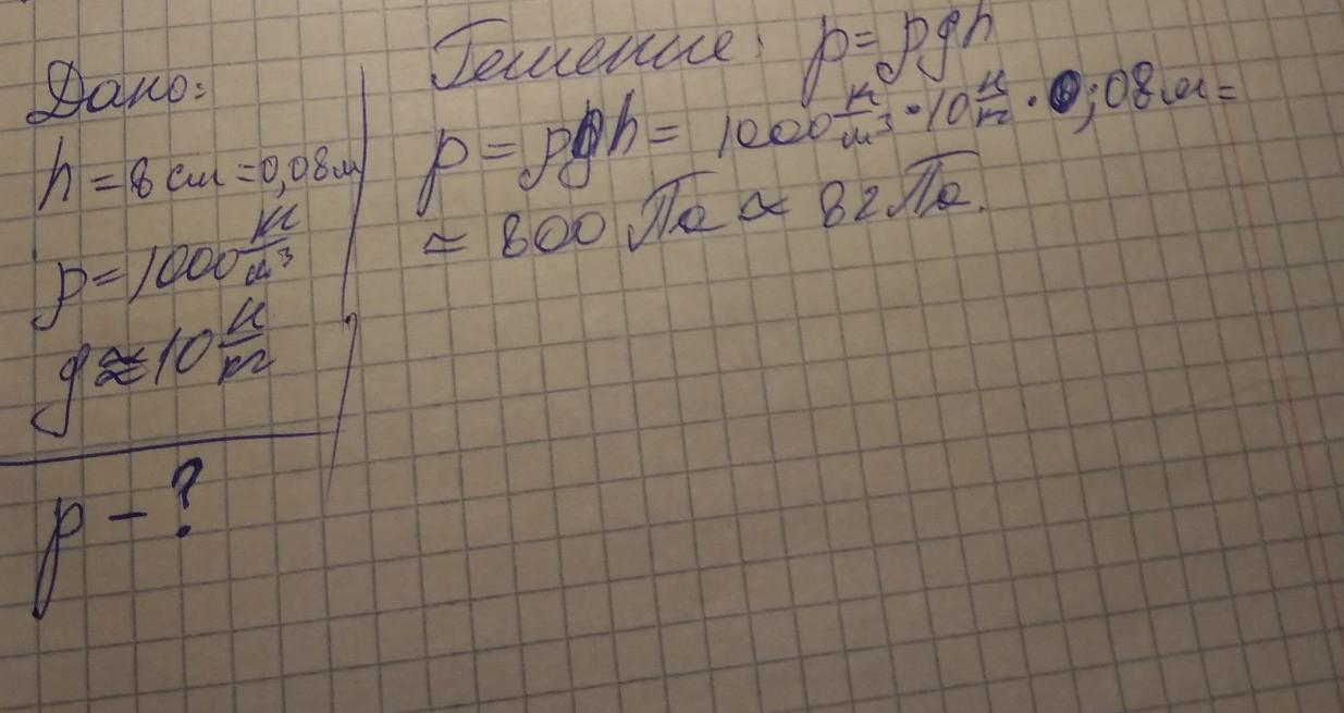 Высота столба воды в стакане 8 см. Какое давление вода оказывает на дно стакана? Какое давление на этом уровне будет оказывать литой класс? *