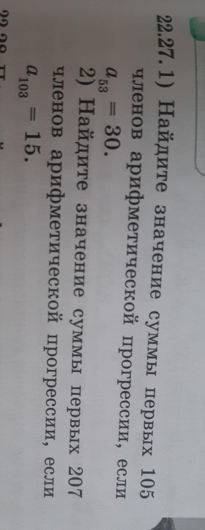 найдите значения суммы первых 105 членов арифметической прогрессии если a53=30