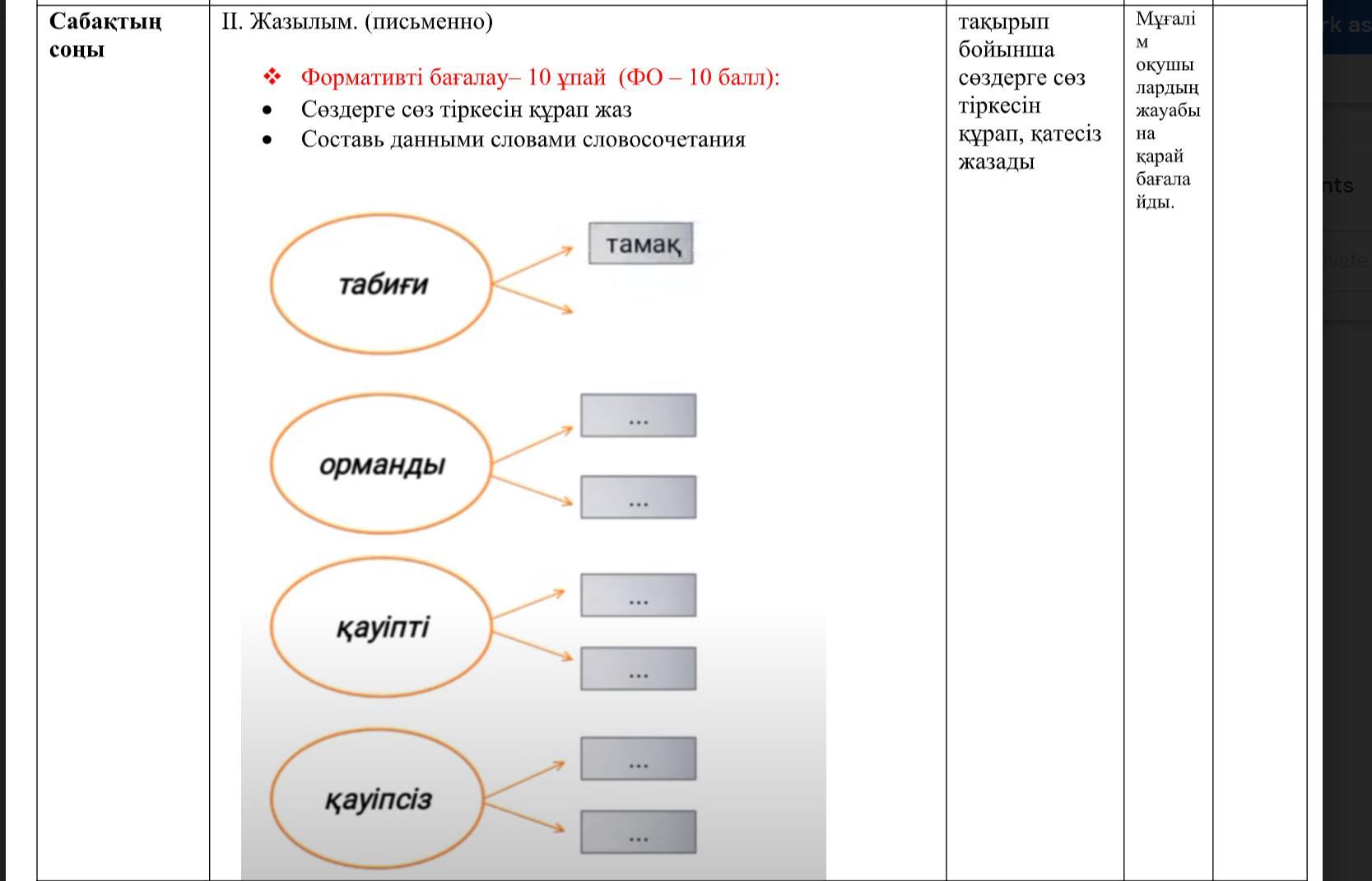 Формативті бағалау– 10 ұпай (ФО – 10 балл):