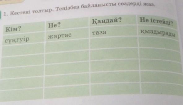 1. Кестені толтыр. Теңізбен байланысты сөздерді жаз.