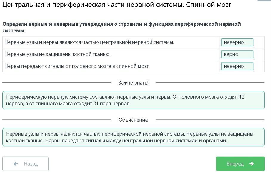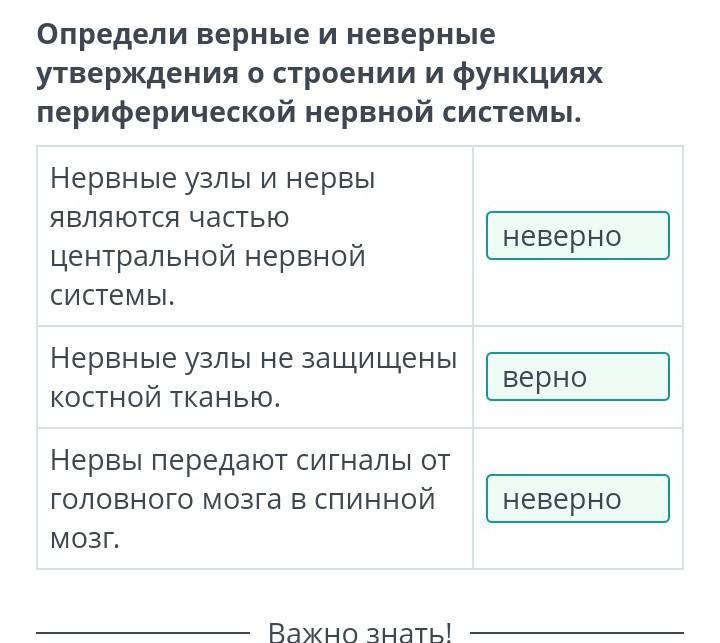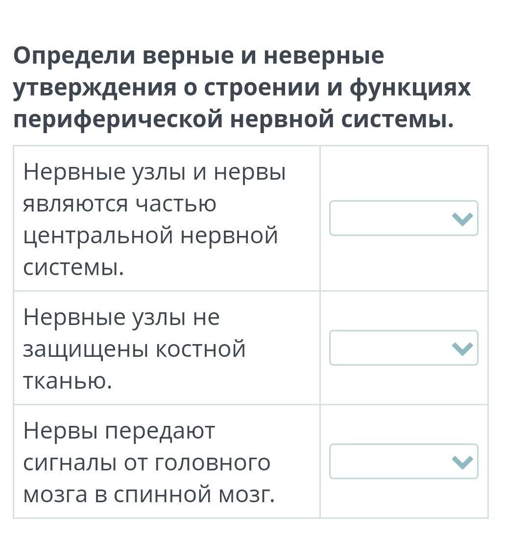 Определи верные и неверные утверждения о строении и функциях периферической нервной системы.