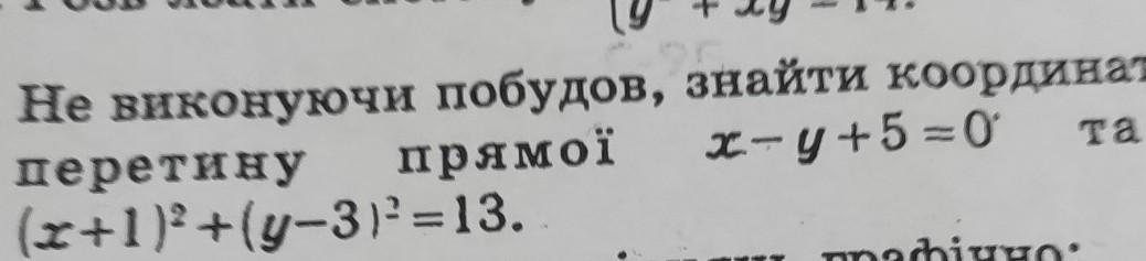 не виконуючи побудови зайти коринати точоперину прямої (вираз на фото ) та кола