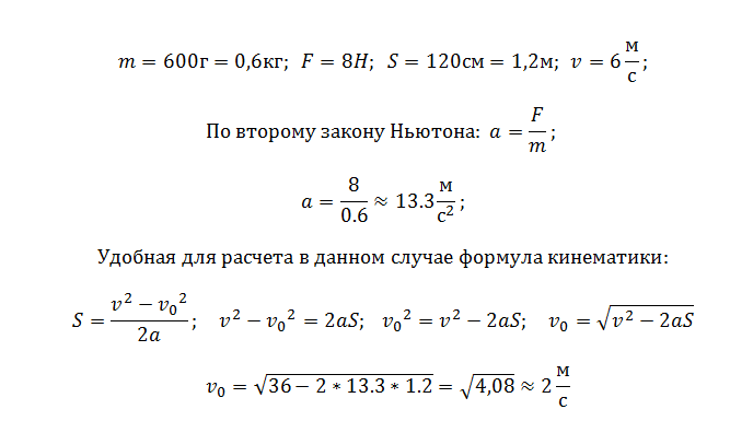 силы 8Н расстояние 120 см оно достигло скорости 6 м / с, движется