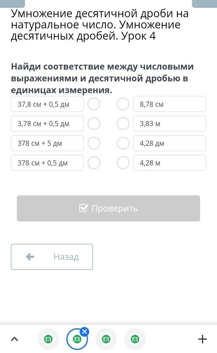 Найди соответствие между числовыми выражениями и десятичной дробью в единицах измерения.