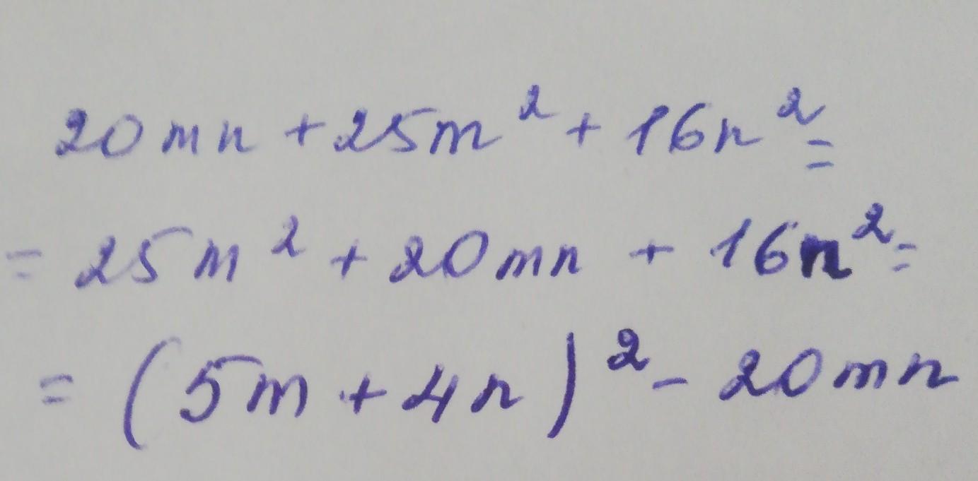 Выделите полный квадрат: 20mn+25m²+16n²
