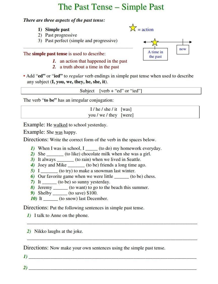 1 did 2 liked 3 rained 4 were 5 tried 6 was 7 was 8 wanted 9 sawed 10 snowed 1. I talked to Anne on the phone 2. Nikko laughed at the joke. 1. I went to the cinema yesterday. 2 the film was very interesting.