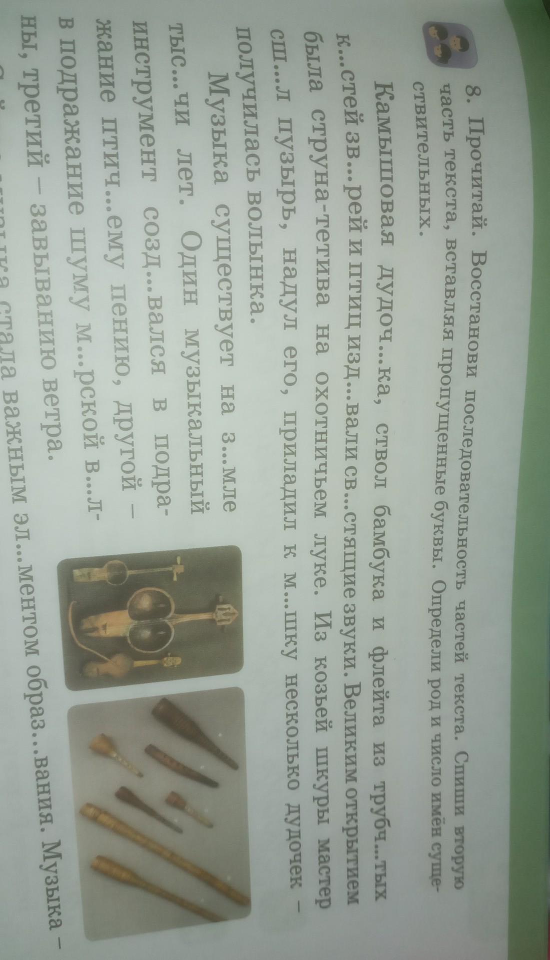 третий класс русский язык Прочитай Восстанови последовательность частей текста Спиши вторую часть текста вставляя пропущенные буквы Определи род и число имён существительных
