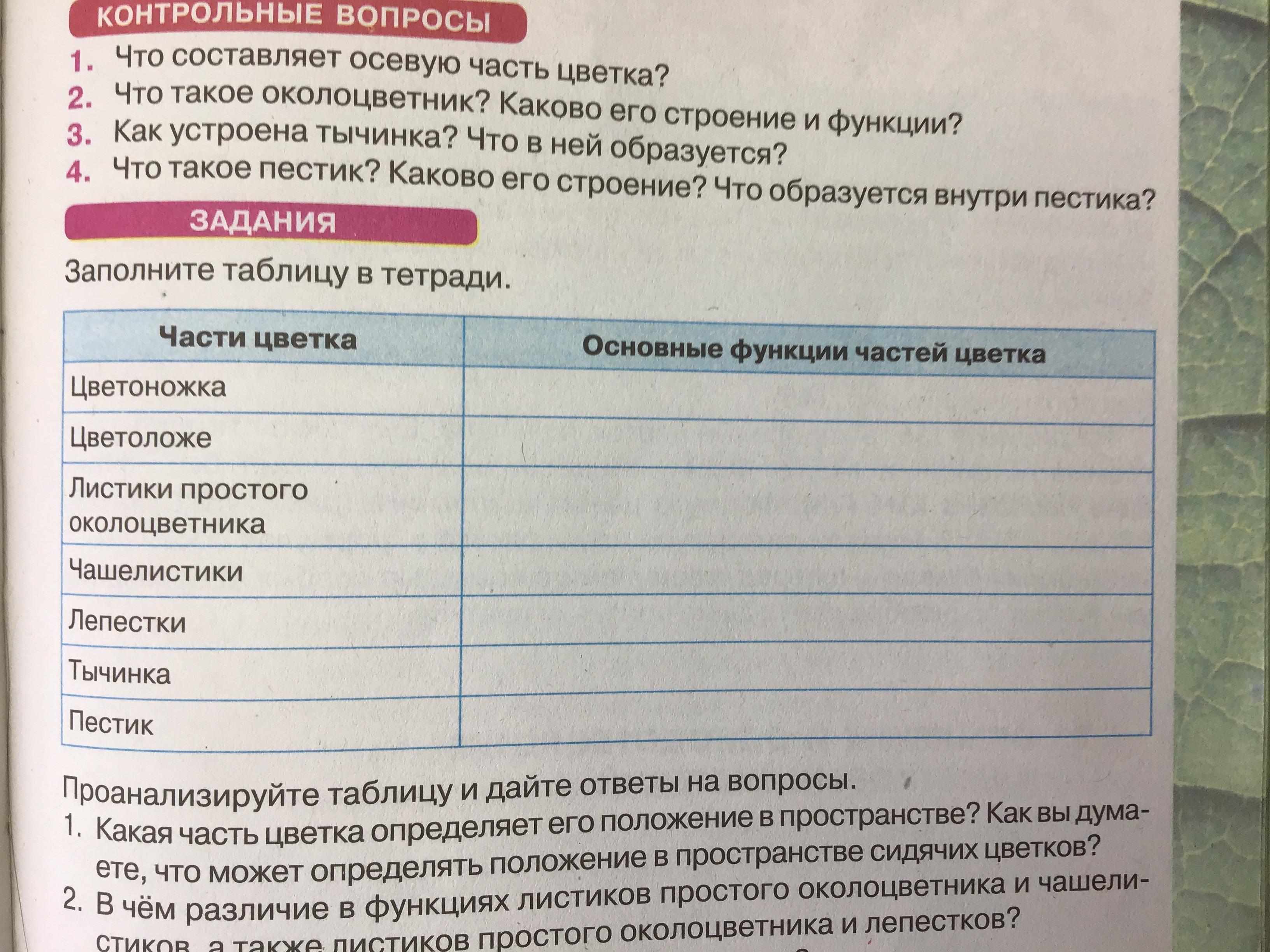 1)Цветоножка выполняет важную функцию- она является опорой цветка,также она доставляет к нему питательные в-ва , соли и воду. 2)Цветоложе -это расширенная часть цветоножки. к нему крепятся все части цветка. 3)Чашечка выполняет главную функцию опоры, потому что она первой образуется при формировании цветка 4) Тычинки- это мужской орган цветка, образующий пыльцу. Внутри Тычинки развивается пыльца, служащая для оплодотвороение. 5) Пестик - это женский половой орган растения, обеспечивает оплодотворение и защиту семязачатков