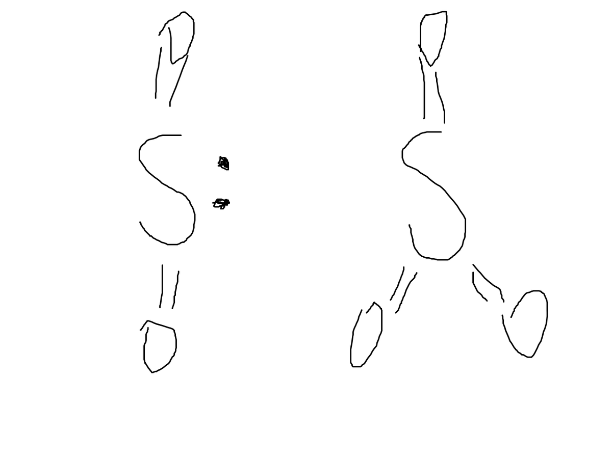 Обе молекулы имеют форму правильного треугольника в центре которого расположен атом серы (у SO2 в вершинах находится два атома кислорода и неподеленная электронная пара, потому молекула полярна; у SO3 в вершинах три атома кислорода, потому молекула неполярна).