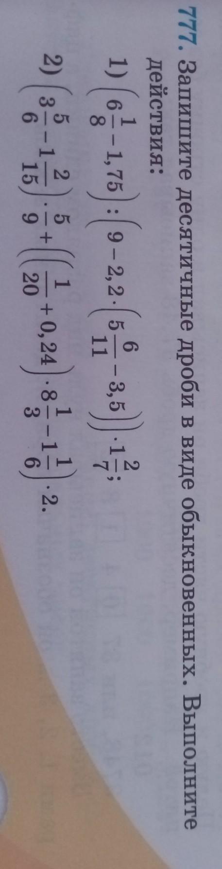 777. Запишите десятичные дроби в виде обыкновенных. Выполните