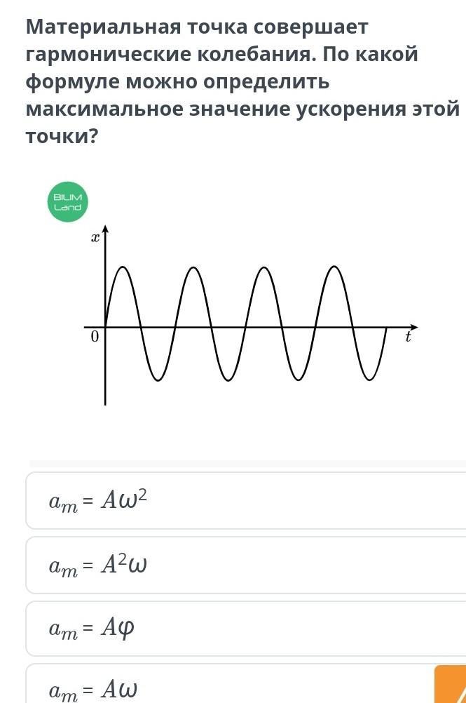 гармонические колебания. По какой максимальное значение ускорения этой