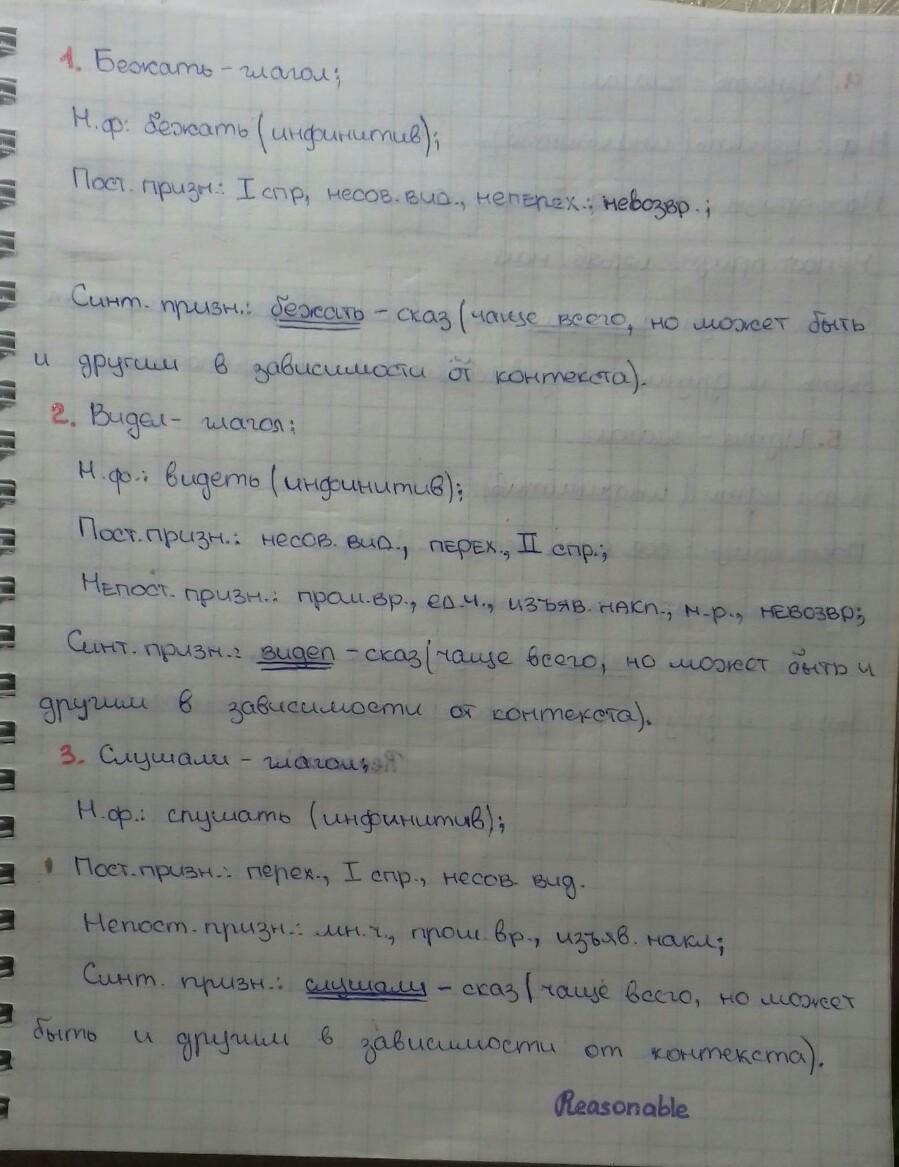 II. Пост. признаки: сов. вид, неперех., невозвр.,1 спр.;