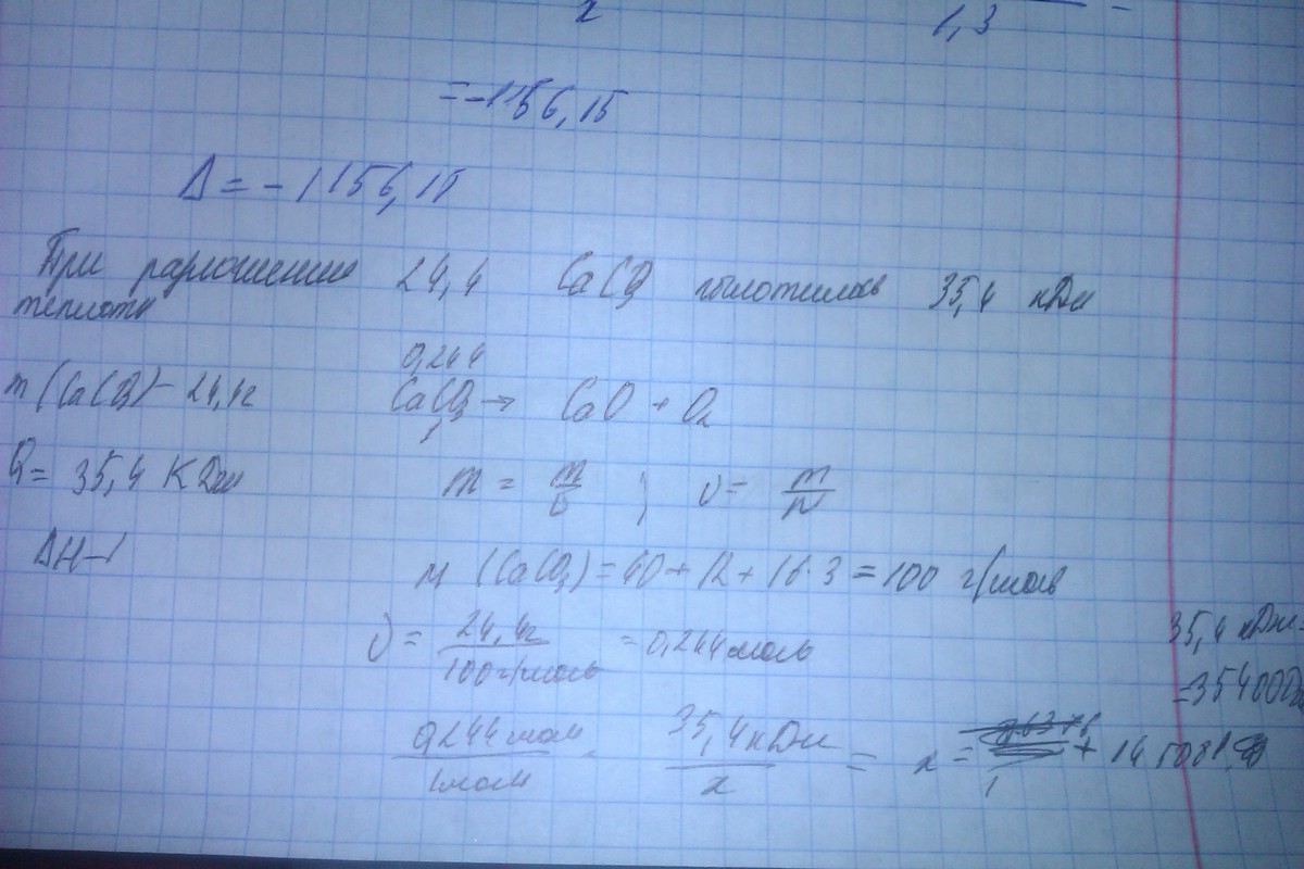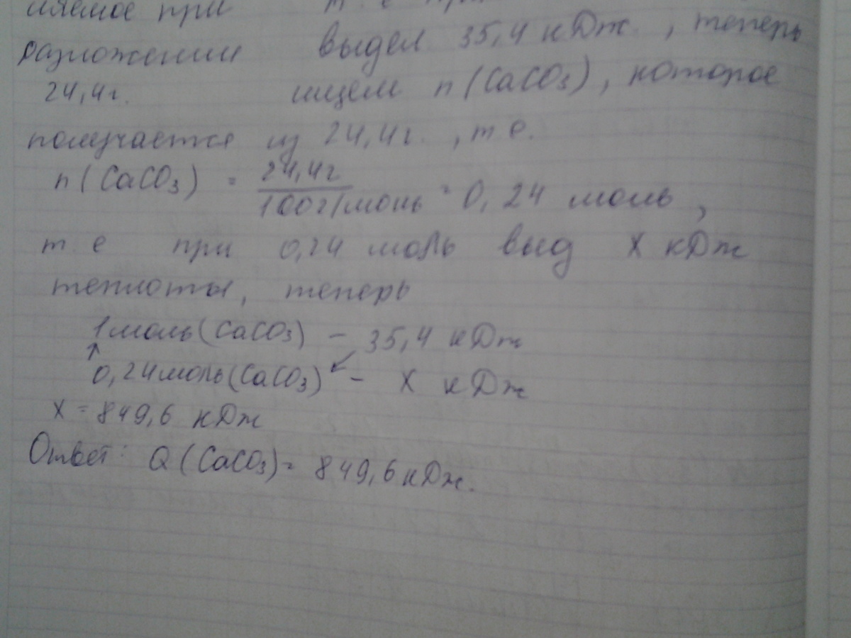 задача .при разложении 24,4 кальция карбоната поглатилось 35,4 кДж теплоты . найти коты теплоты